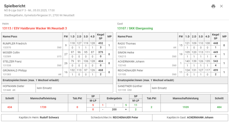 In der dritten Frühjahrsrunde trafen wir auf der Stadtkegelbahn in Wr. Neustadt auf den ESV Haidbrunn Wacker Wr. Neustadt 3.