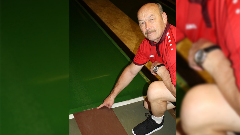 Lokalaugenschein mit dem Teamkapitän Johann Ackermann: Die Schäden auf der Bahn wirken sich mittlerweile auf die Rolleigenschaften der Kugel aus.FOTO: Novak